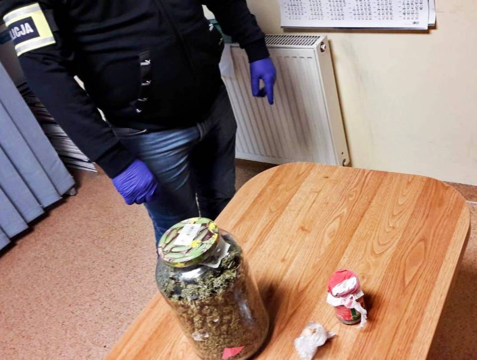 Policjanci po wejściu do obserwowanego domu jednego z mężczyzn zastali 32 i 37-latka. Obaj zostali zatrzymani i przewiezieni do policyjnego aresztu. Stróże prawa w pomieszczeniach mieszkalnych zabezpieczyli blisko 290 gramów marihuany, która była schowana w szklanych słojach.
