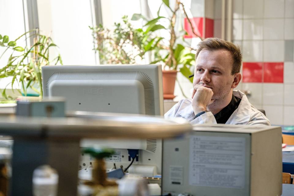 Karol Tutek ukończył Technologię Chemiczną na Wydziale Chemicznym PŁ. Teraz kończy studia doktorskie. Ale swoją przyszłość widzi w biznesie.