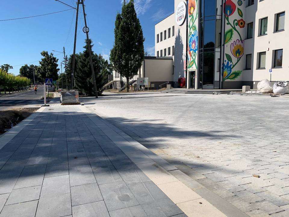 - Wymieniamy kostkę brukową w tych miejscach, w których była. Nikt nam nie może zarzucić tego, że robimy „betonozę", bo nigdzie nie dokładamy kostki tylko ją wymieniamy na nową - mówi Wójt Jan Słodki. - Na terenie przed budynkiem Urzędu Gminy będą ładne fontanny, które podkreślą urok całości nasadzeń.