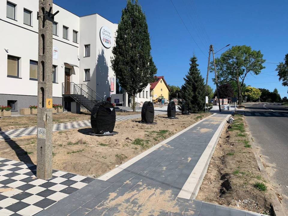 Przed Urzędem Gminy Głuchów przebudowywany jest teren zielony. Jak informuje Wójt Jan Słodki, wykonano nowe nasadzenia, wymieniana jest także kostka brukowa na starym parkingu oraz za budynkiem Urzędu Gminy. Odświeżane są również alejki i chodniki wokół. Dodatkowo budowane jest nowe ogrodzenie całego terenu UG.