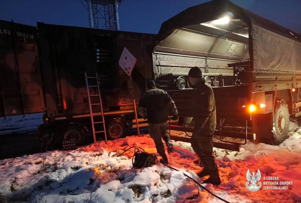 Żołnierze 9ŁBOT dotarli do Poddębic z własnym, specjalistycznym wyposażeniem - kontenerową elektrownią polową o mocy 400 kV, przystosowaną do zasilania infrastruktury cywilnej w warunkach ekstremalnych i w sytuacjach nagłej potrzeby. Sprzęt tego typu zwykle wykorzystywany jest podczas klęsk żywiołowych, awarii sieci energetycznych lub przy zabezpieczaniu infrastruktury krytycznej.