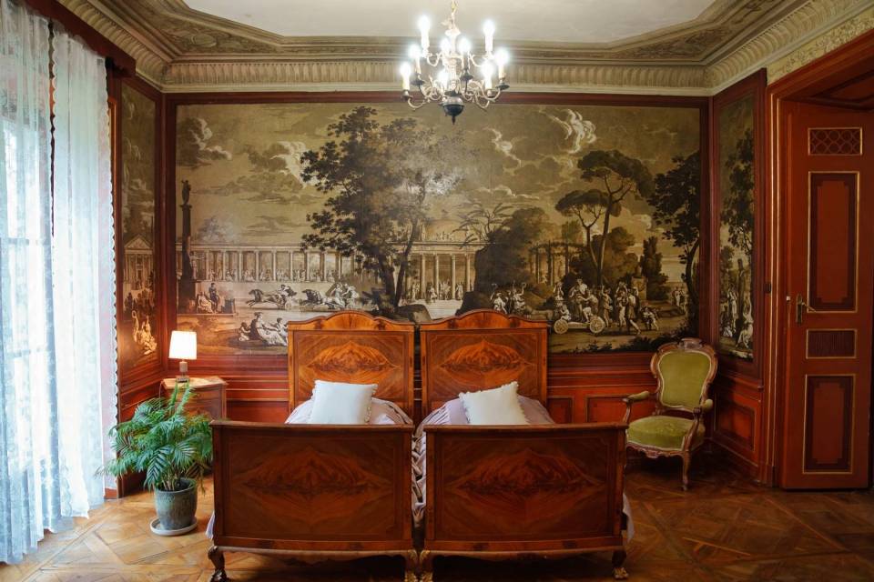 Według lokalnej tradycji, Maria przygotowała dla niego specjalny pokój w rezydencji, a cesarz miał odwiedzić ją potajemnie w czasie jednej z kampanii. Umeblowany z wielką starannością, miał zapewnić komfort i prywatność najważniejszemu gościowi pałacu. Pokój zdobią zachowane oryginalne tapety – ręcznie wykonywane, z delikatnymi motywami roślinnymi, sprowadzane prawdopodobnie z Francji. Ich doskonały stan zachowania do dziś budzi podziw historyków i konserwatorów sztuki. Jednak mimo tej opowieści brakuje jednoznacznych źródeł historycznych, które potwierdzają, że Napoleon kiedykolwiek przebywał w Walewicach.