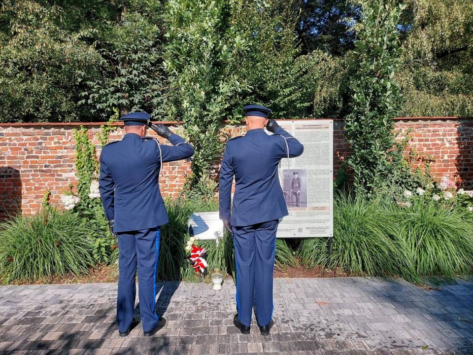 Święto Policji to dla policjantów i pracowników Policji nie tylko czas oznaczeń, awansów, życzeń i gratulacji. To również dzień zadumy poświęcony tym, którzy polegli i których nie ma już wśród nas – odeszli z naszych szeregów na zawsze. Pamiętamy o nich i pamiętać będziemy! Przed uroczystością Komendant Powiatowy insp. Piotr Bartkiewicz wraz z kadrą kierowniczą złożył kwiaty przed tablicą upamiętniającą starszego posterunkowego Policji Województwa Śląskiego Stanisława Ręgowskiego, który pochodził z okolic Rawy Mazowieckiej. Policjant ten został zamordowany strzałem w tył głowy przez NKWD w 1940 roku w Kalininie, spoczywa na cmentarzu wojennym w Miednoje. Pośmiertnie awansowany w 2007 roku przez Prezydenta Rzeczypospolitej Polskiej do stopnia aspiranta. 3 listopada 2023 roku na terenie Ogrodu Dialogu w Rawie Mazowieckiej posadzony został Dąb Pamięci.