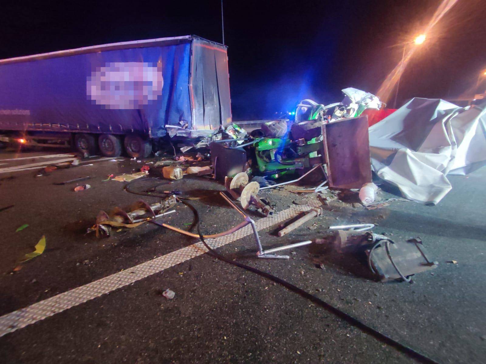 Do zdarzenia doszło na 295. kilometrze autostrady A1 w kierunku Gdańska. Jak informują służby, po zderzeniu jeden z pojazdów - dostawczy zostały doszczętnie zmiażdżony, a przewożona w nim ładowarka teleskopowa wypadła na jezdnię, całkowicie blokując trasę.