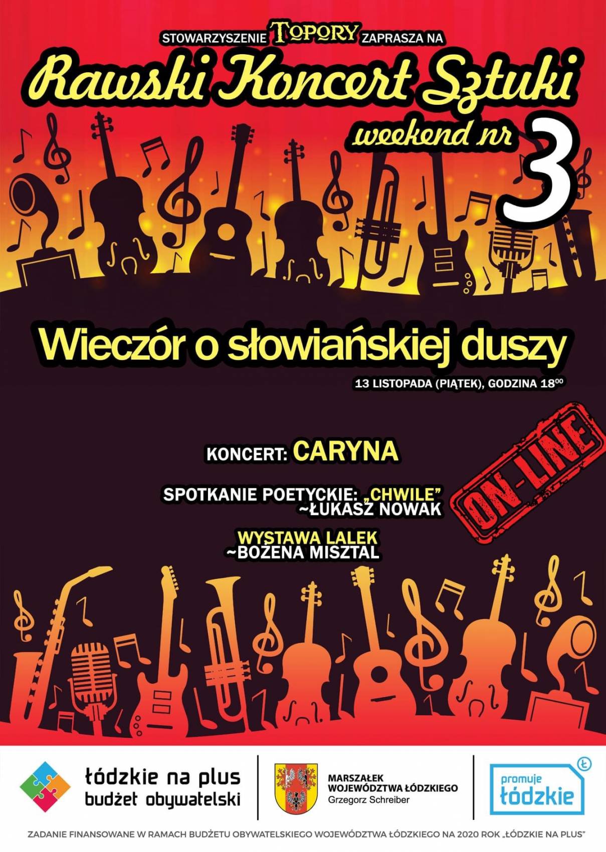 Koncert, odczyt poezji oraz wystawa lalek będą Państwu udostępnione całkowicie bezpłatnie. Zadanie jakim jest „Rawski Koncert Sztuki" jest finansowane w ramach Budżetu Obywatelskiego Województwa Łódzkiego na 2020 rok „Łódzkie na plus".