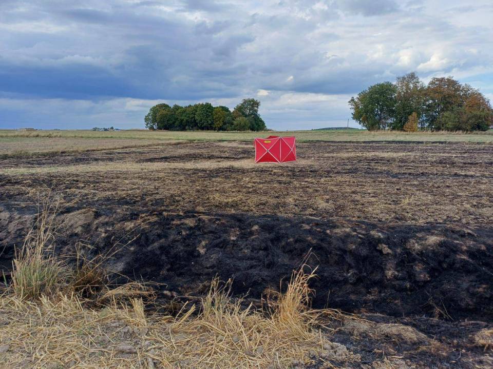 Do tragicznego w skutkach pożaru doszło we wtorek na jednym z pól w okolicach miejscowości Ożarów w powiecie wieluńskim. O godzinie 15.04 strażacy zostali wezwani do pożaru ścierniska. Ogień objął obszar około 4000 metrów kwadratowych.