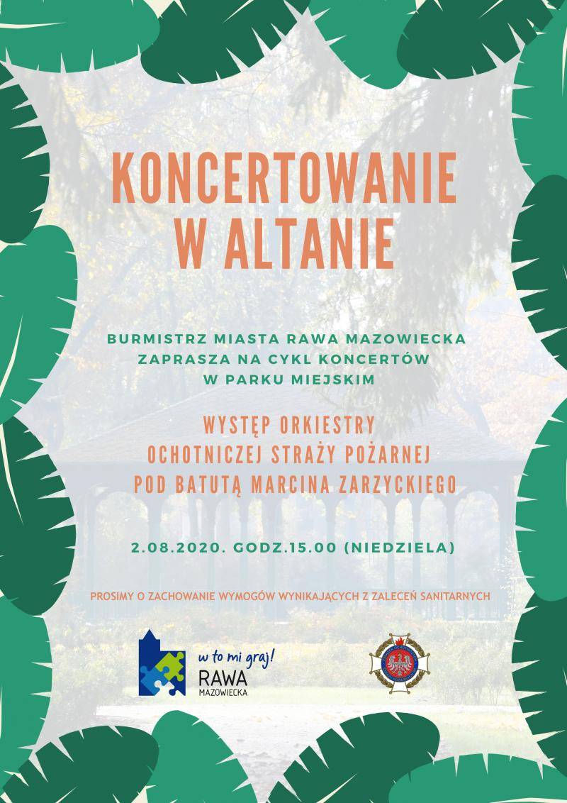 W niedzielę, 2 sierpnia wystąpi Orkiestra Ochotniczej Straży Pożarnej w Rawie pod batutą kapelmistrza Marcina Zarzyckiego. Początek o godzinie 15:00.